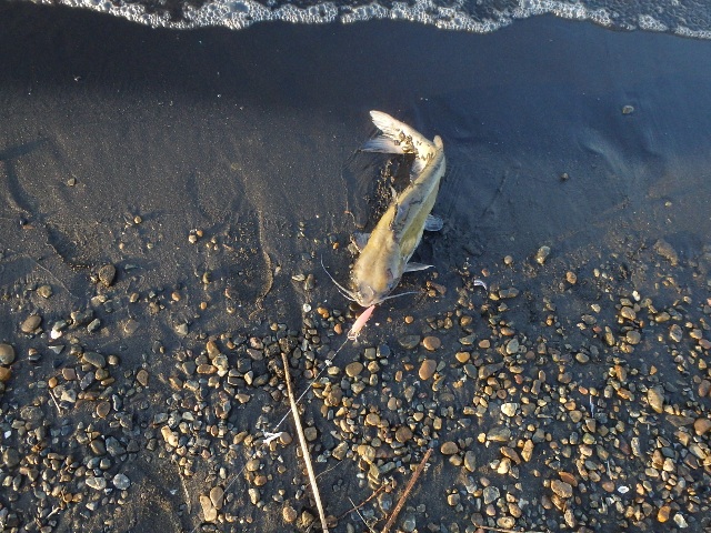 波打ち際で掛けた40cm級はまず寄ってこない。