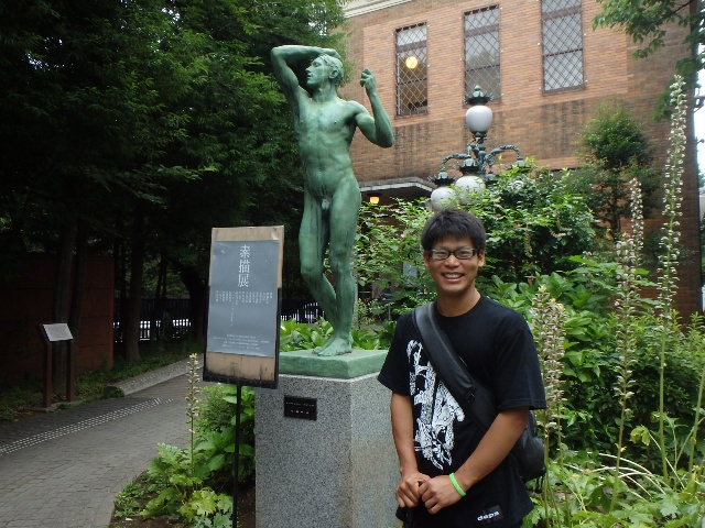 入口にあるロダン像の前で記念撮影をした。