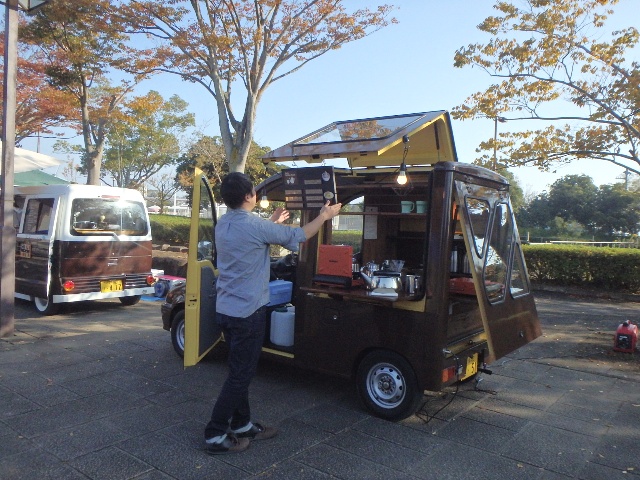 コーヒーとクレープの移動販売車が参加してくれて、