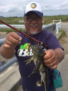 で、釣れたのがウシガエル。