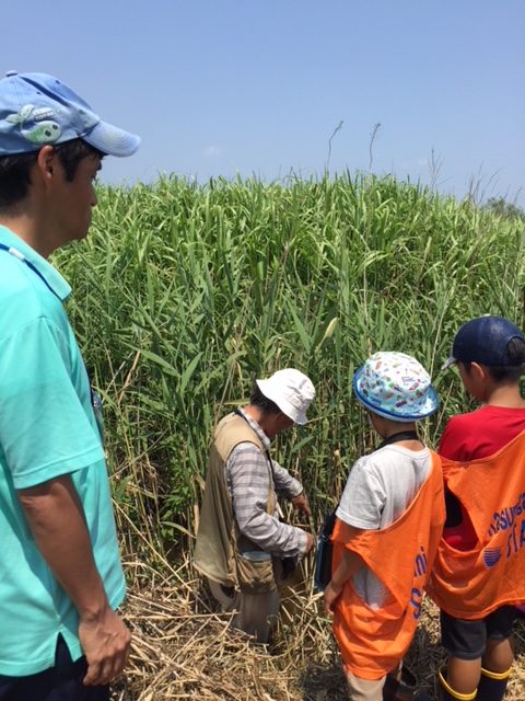霞ヶ浦に生育している水生植物を観察して、ヨシ船やヨシ笛を作ったりして、
