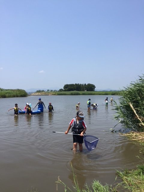 遊びながら水生植物にふれあって霞ヶ浦を理解していくてぇ活動だ。
