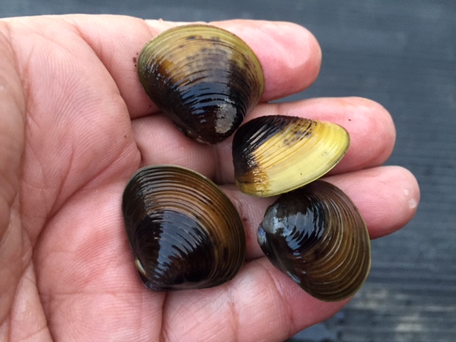 こんな二枚貝が水路にたくさん棲みついてくれたら、