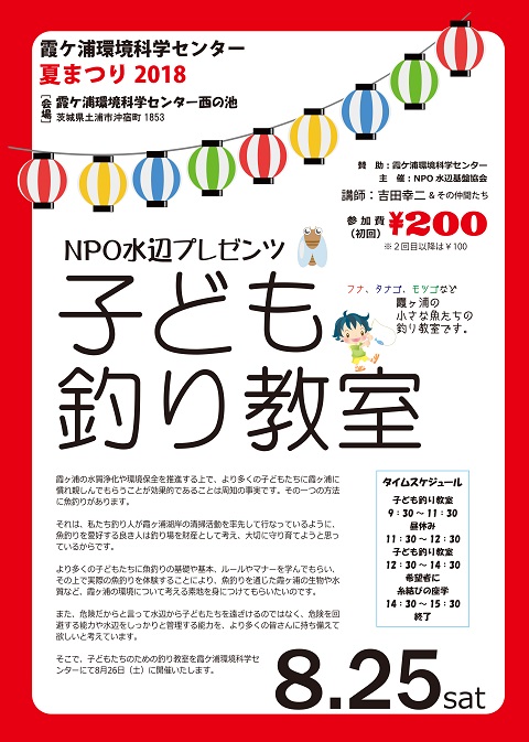 8月25日(日)に開催される子ども釣り教室の時までには、