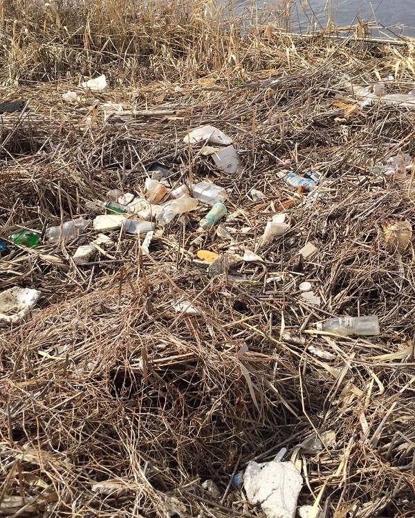 霞ヶ浦でペットボトルやビニール袋、発泡スチロールなどの