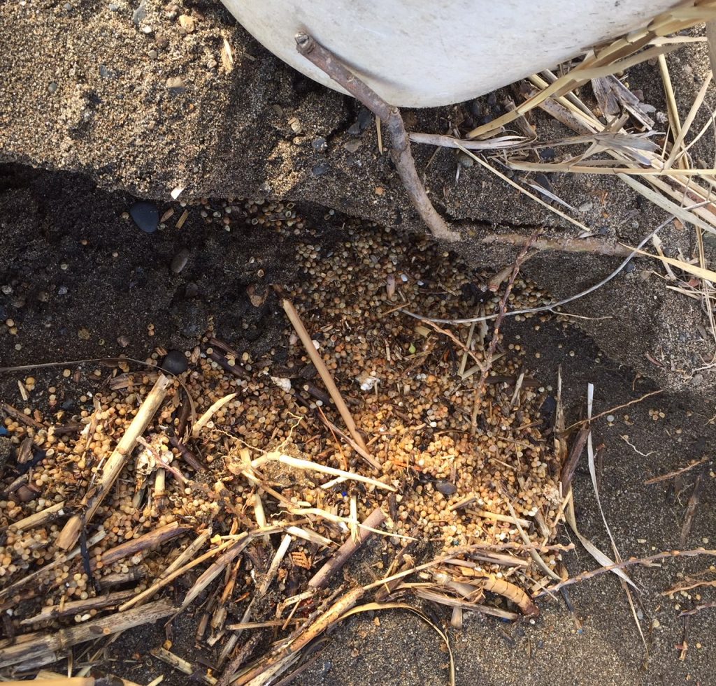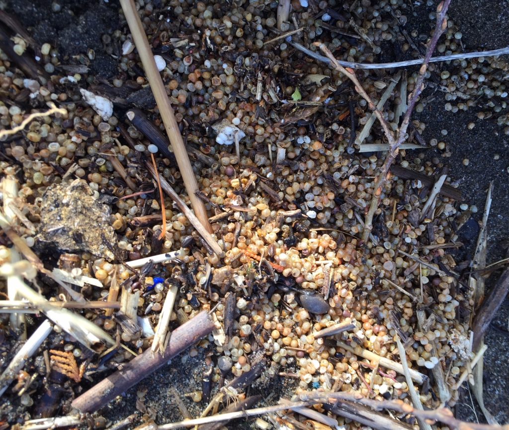 よく見ると汚れていない白い発泡ビーズもある。