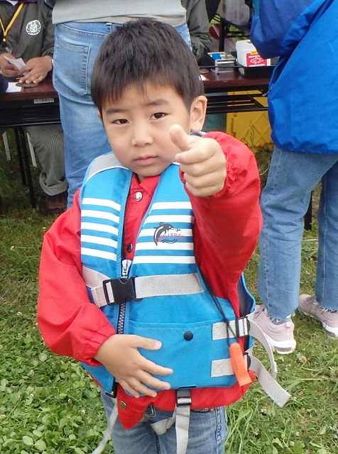 今回はライフジャケットを着こんでゴミ拾い参加してくれたお子さんがいて、