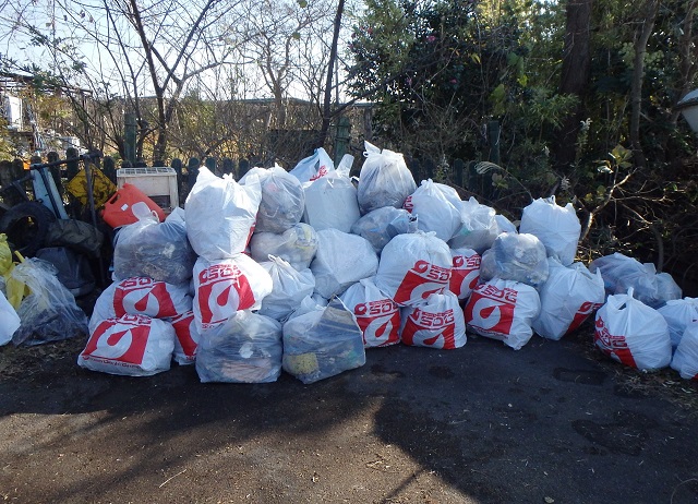 昨年の12月14日に阿見町大室の湖岸線で行ったときのゴミの回収量である。