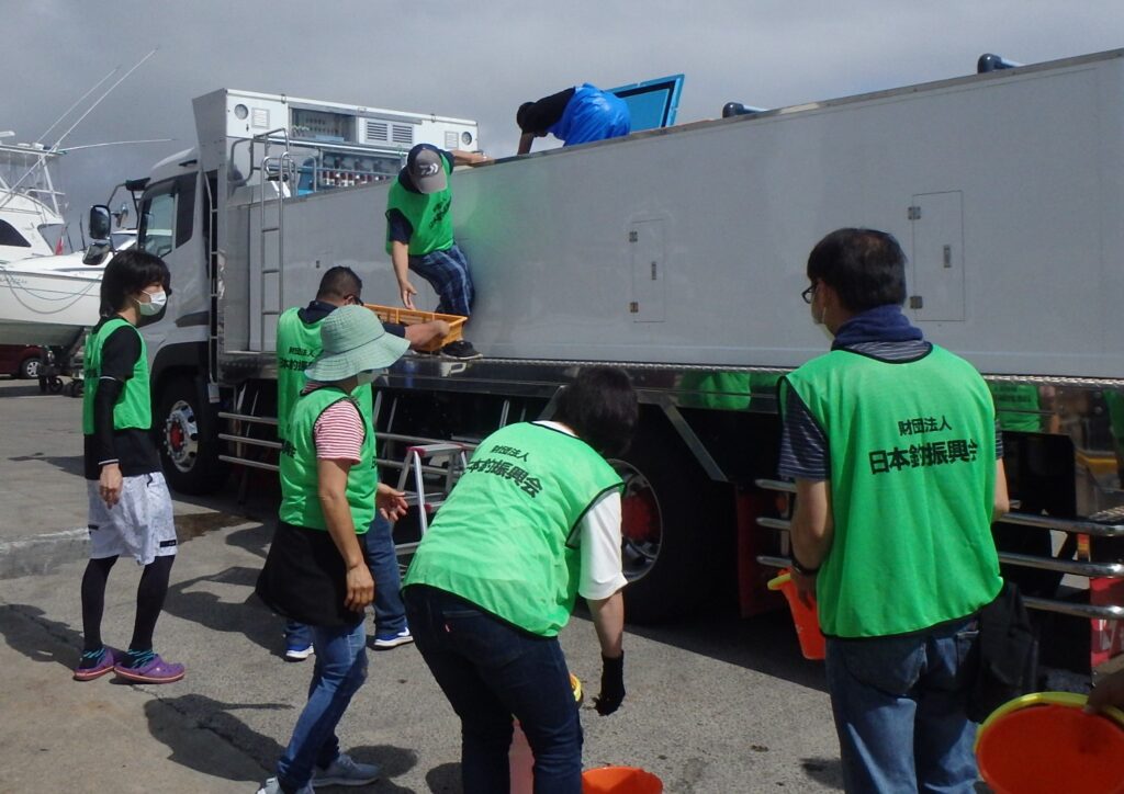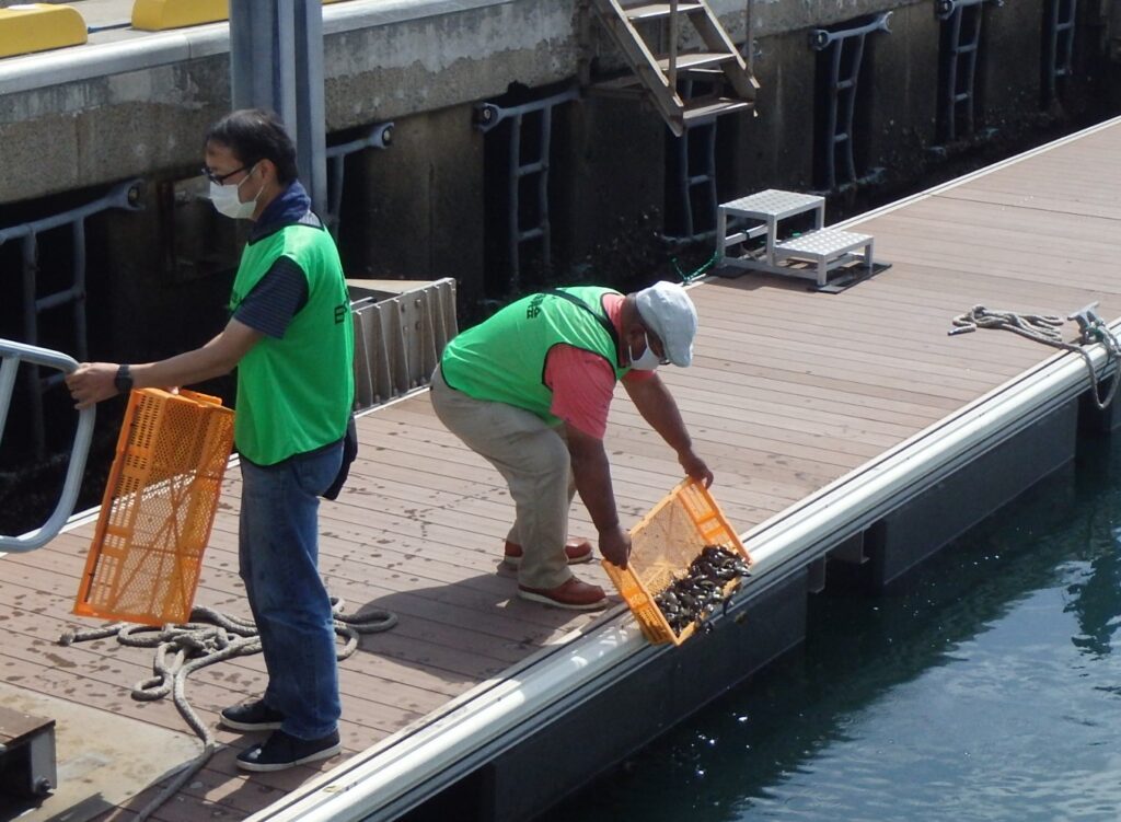 魚を水中へと放流するのである。