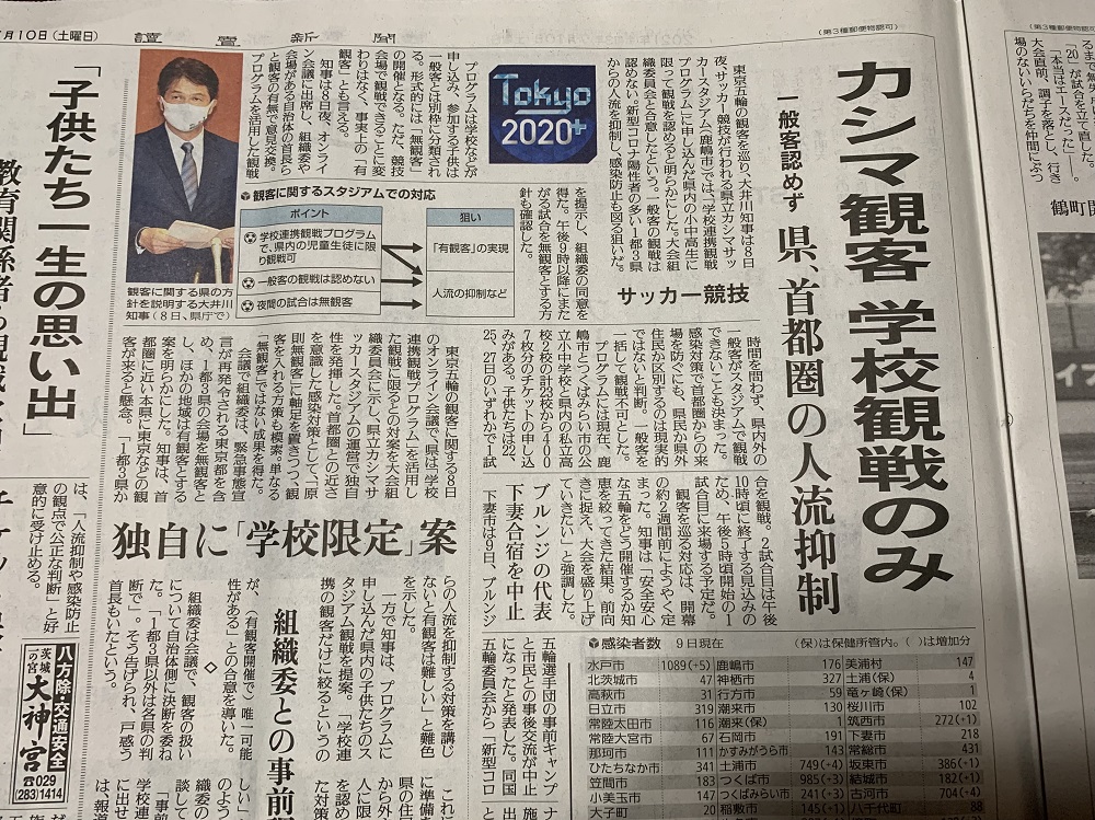 茨城県の大井川知事が鹿島スタジアムでのオリンピックを