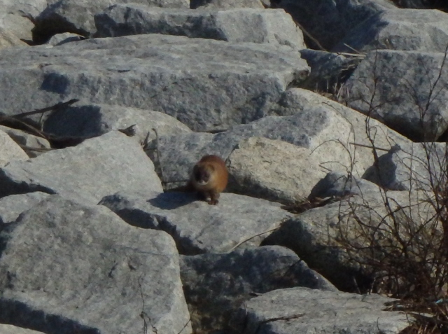 ポカポカ陽気に誘われて石積みの上をチョロチョロと、