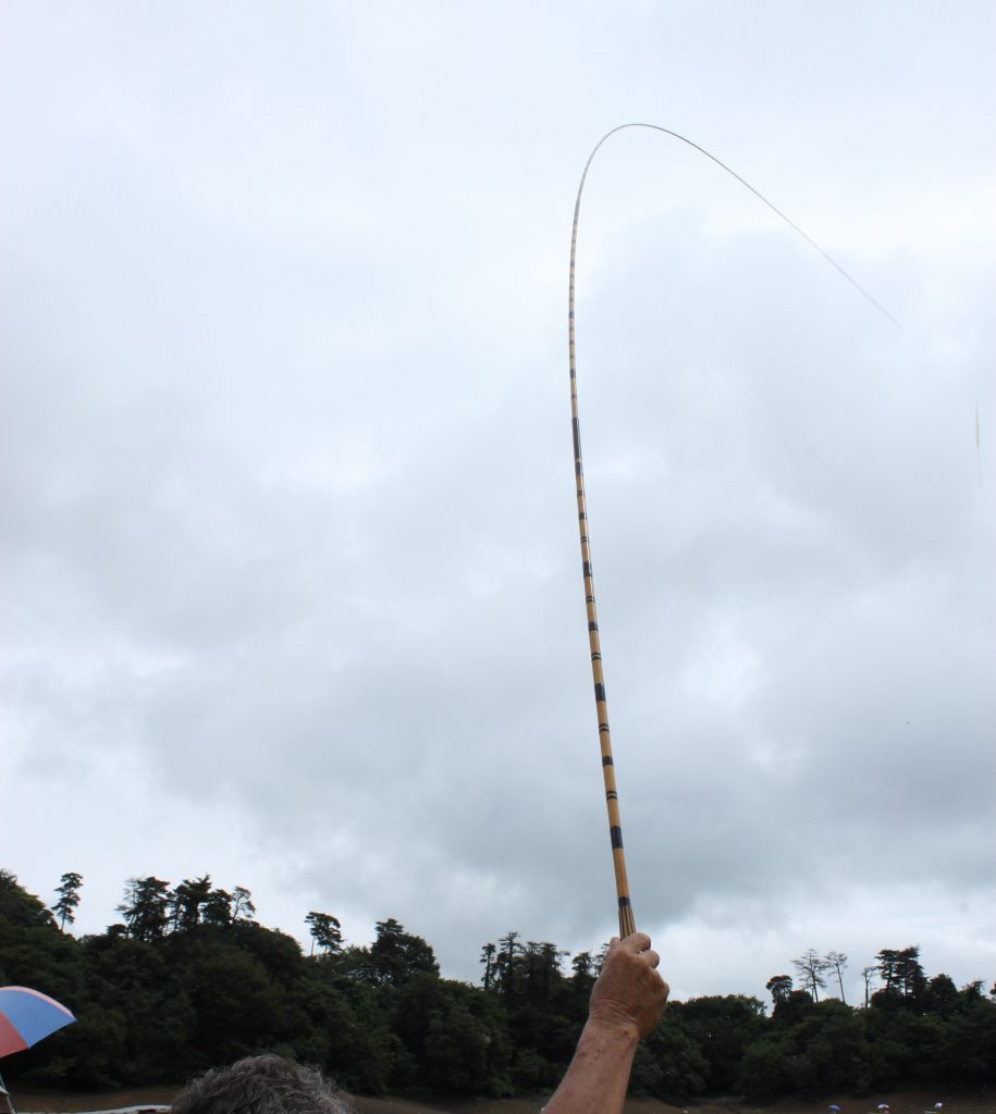 竹竿の穂先は真竹の尺竹(円周の長さが1尺ぐらいの竹)を削って作った「削り穂」、