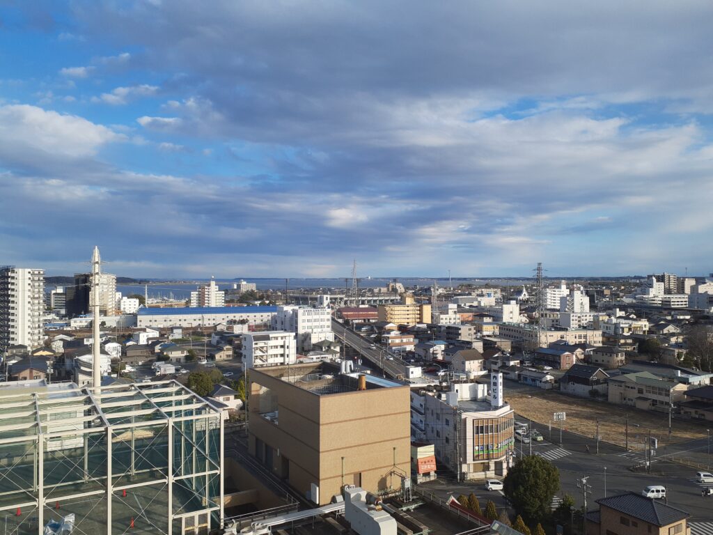 ホテル・マロウド11階から霞ケ浦を望む。