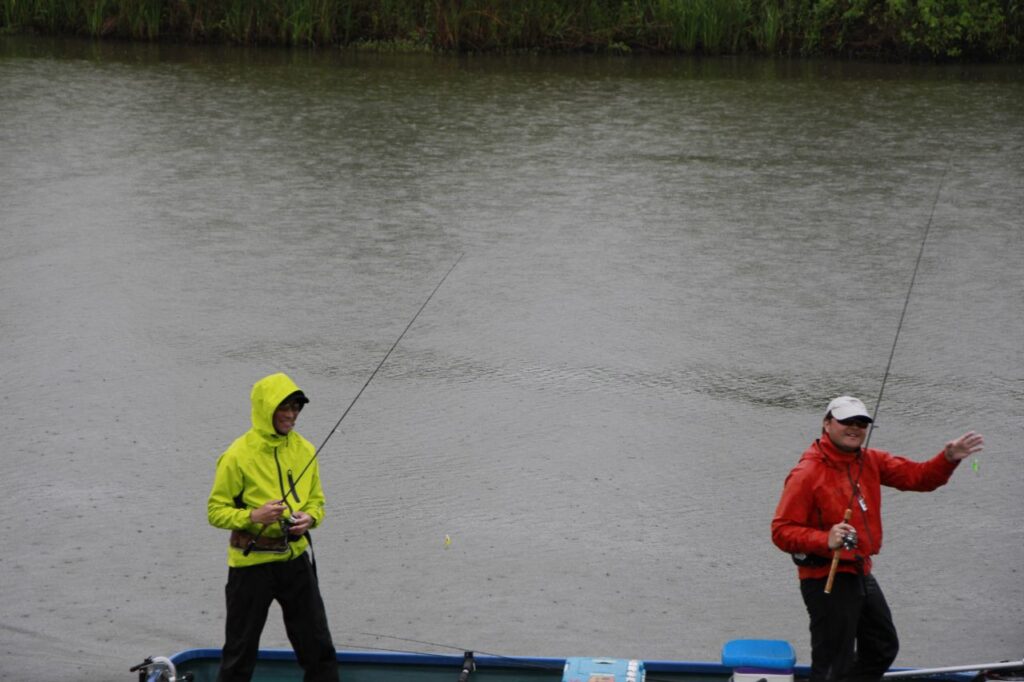 「雨がひどくなってきて、レインウエアがびしょ濡れになってしまったので着替えて、もう終わりにしようかと思ったのですが、思い直してもう一回出船。最後、奥さんがキャットか何かをドライブクローラーで掛けたのですが、僕がランディングしようとしたときにバラしてしまったのが残念です」と語った。