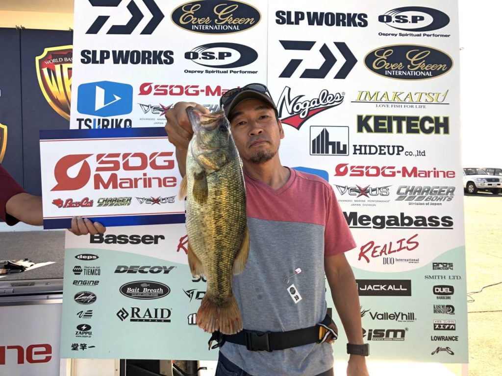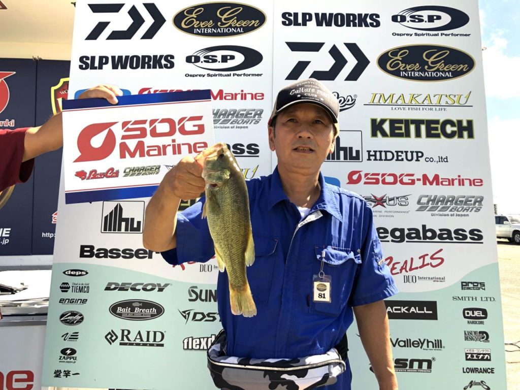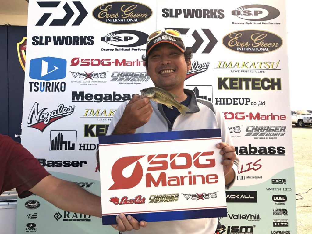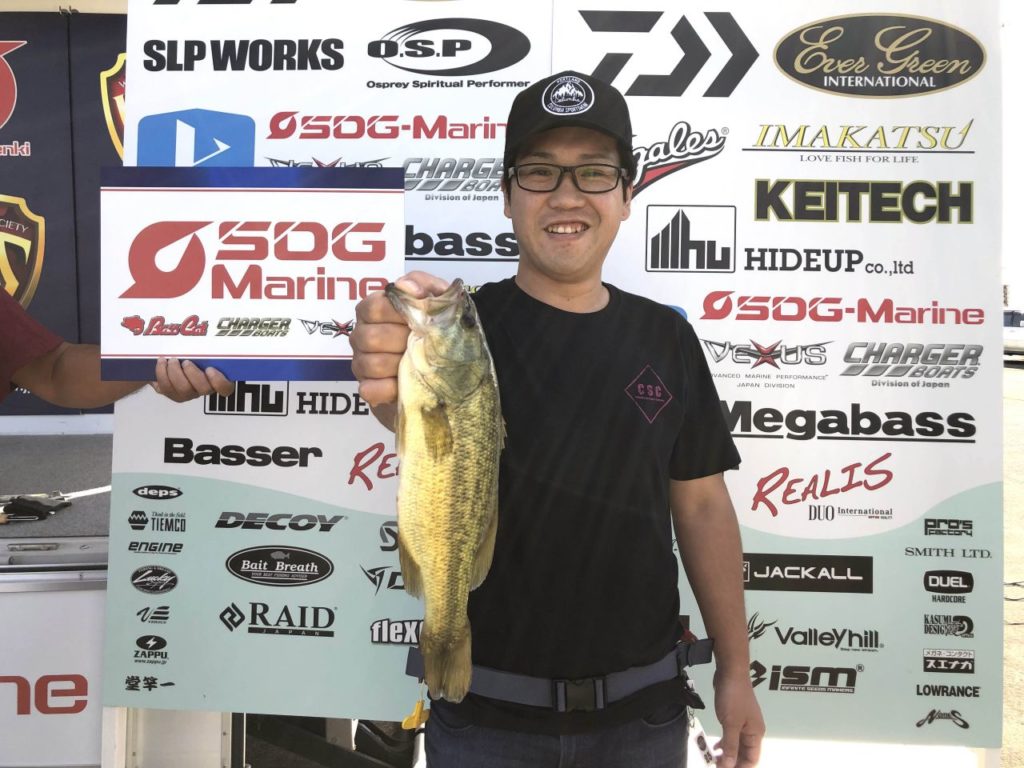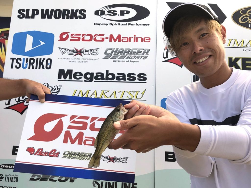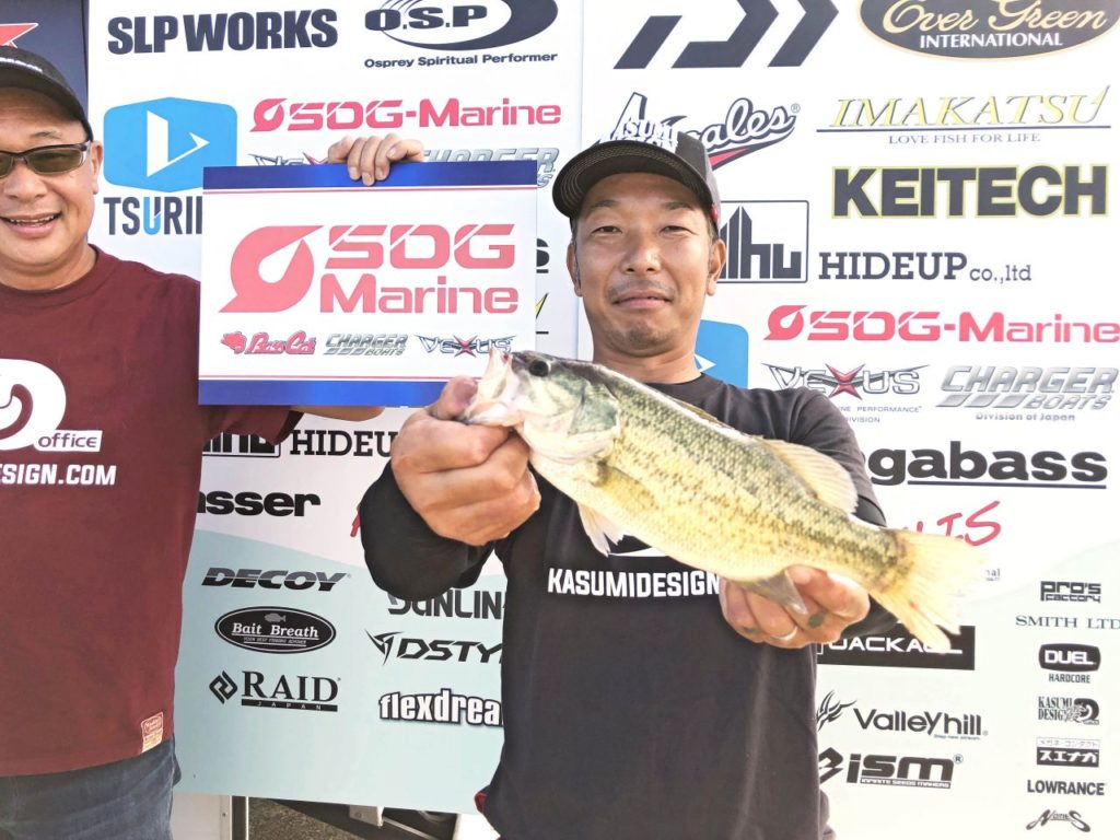 「カットテールのダウンショットをズル引きし、止めたらバイトがあった。今日の釣果はこれ一本です」と若杉さんは表彰の際、コメントしました。