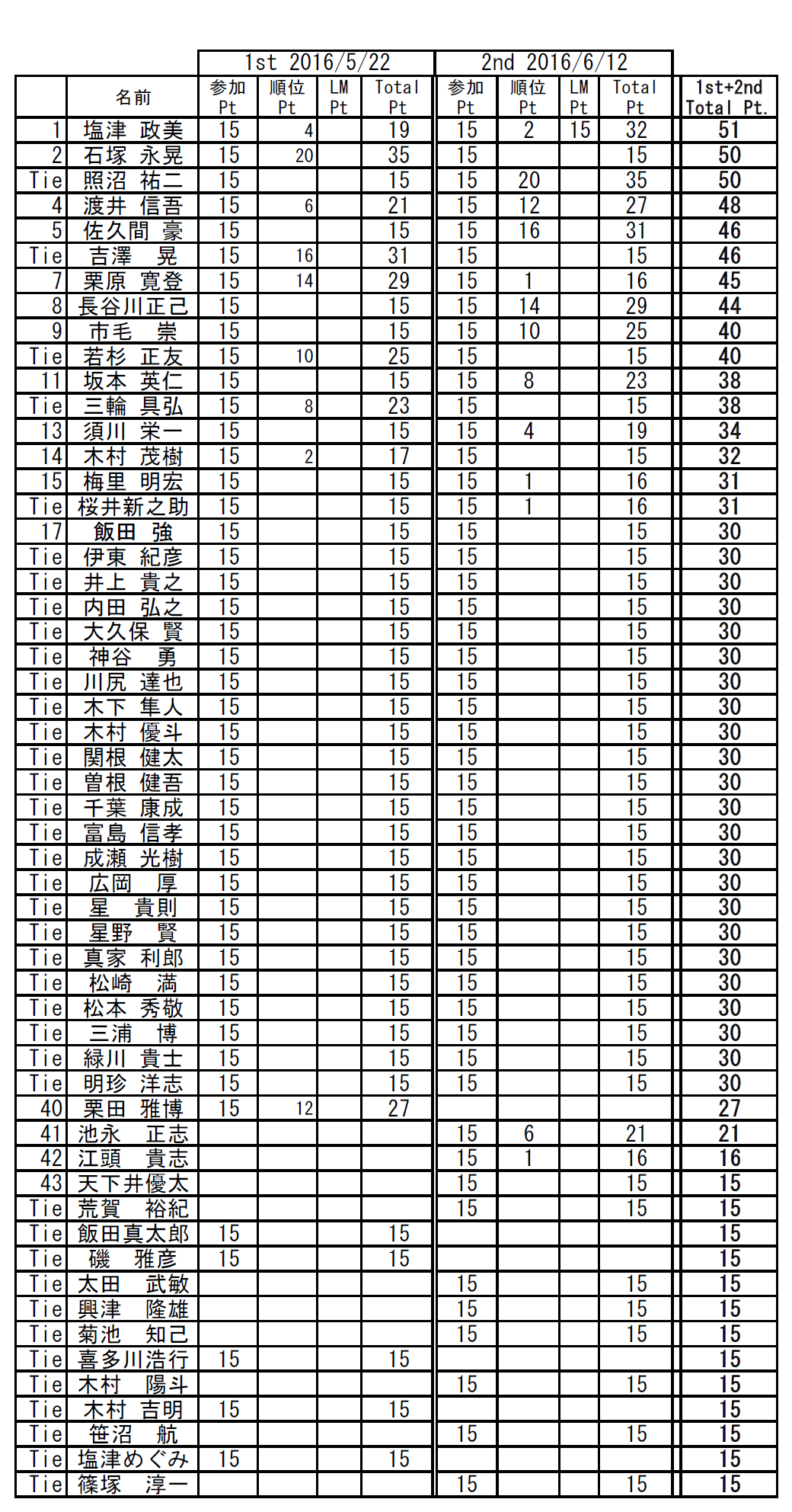 優勝してリミットメイクした場合は最大50pが獲得できる。