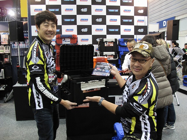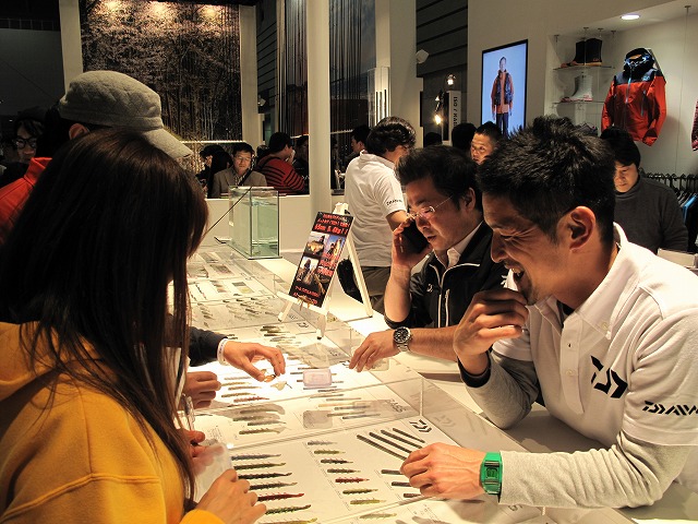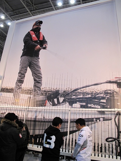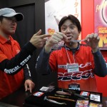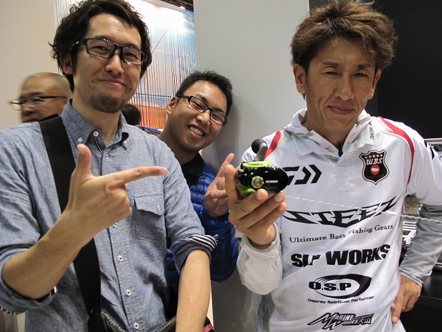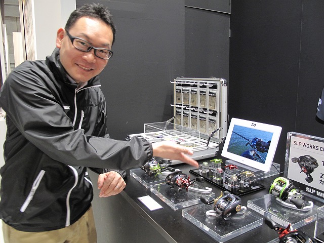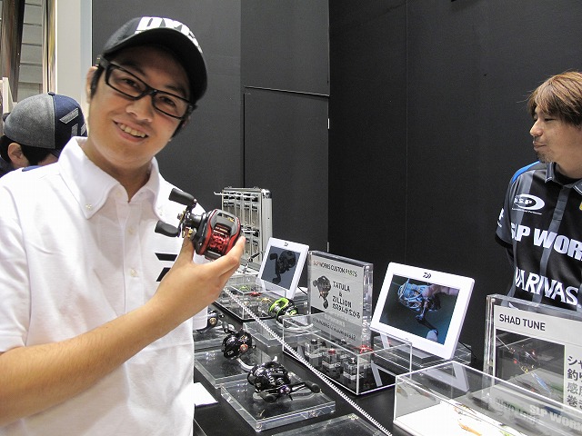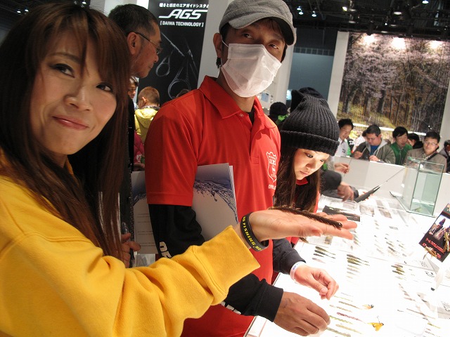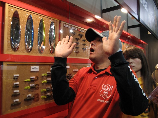 - DAIWA 大変な盛況の中やっとショーケースに近づけました!楽しそうに商品説明してくださるマスオ氏。ネコストレートにもNEWサイズが登場です!
