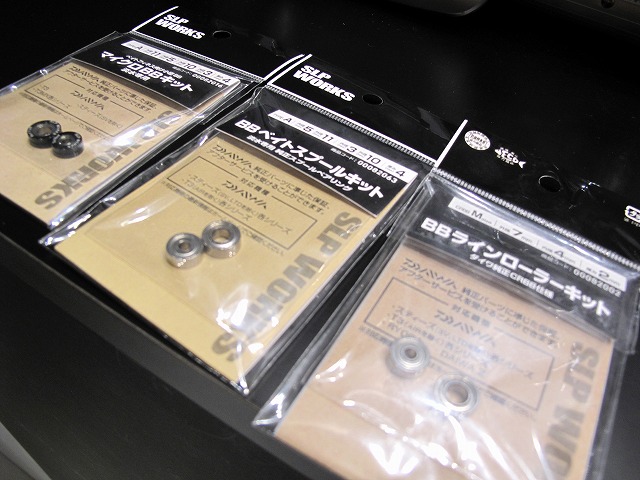 - SLP WORKS リールにさらなる性能をもたらすベアリングキット。(左)軽量ルアーの飛距離UP!-(中)さらに遠くへアキュラシーを求められる-(右)純正ベアリング。
