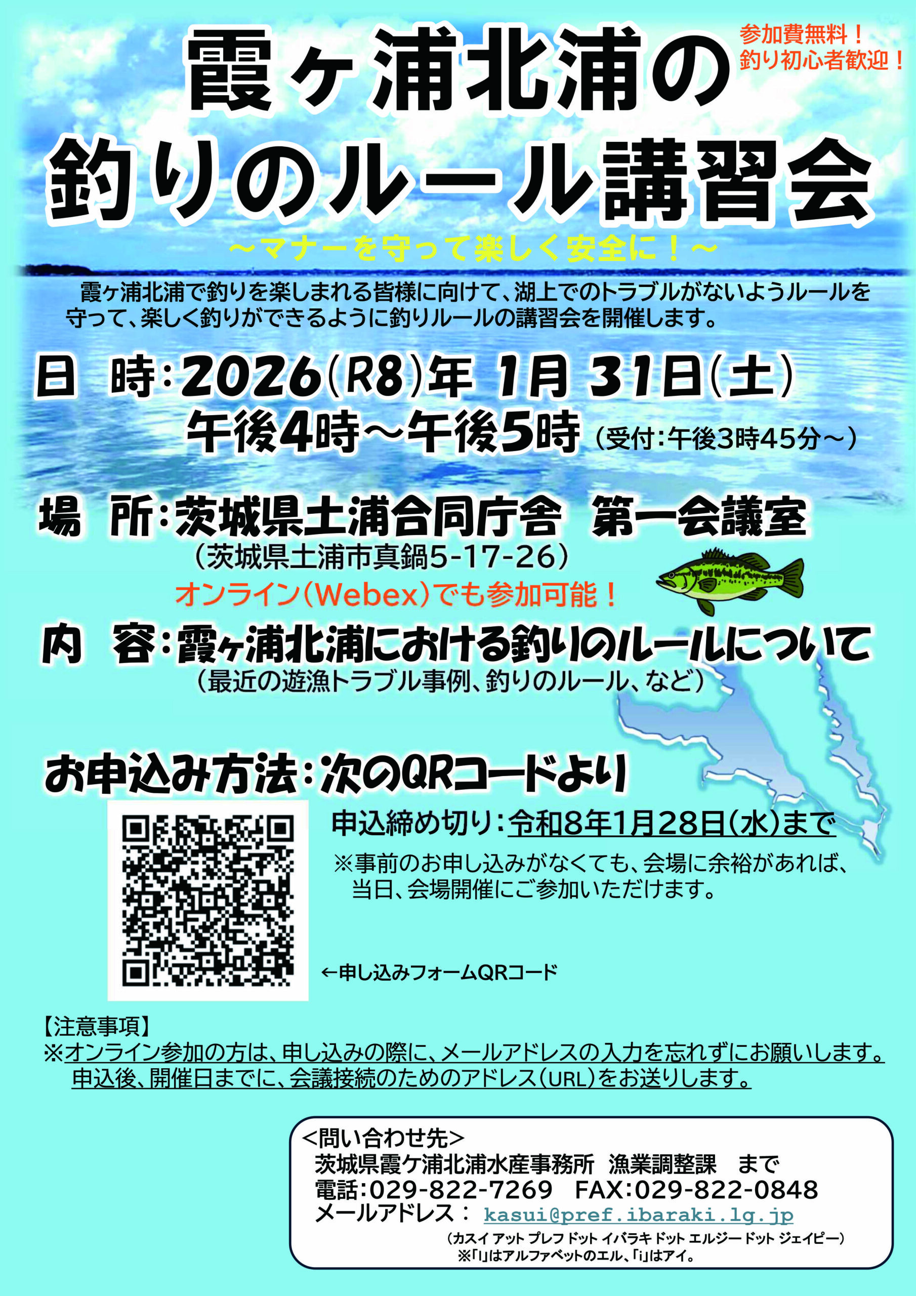 それを踏まえ、茨城県霞ケ浦北浦水産事務所では、アングラーを対象とした釣りのルール講習会を開催します。