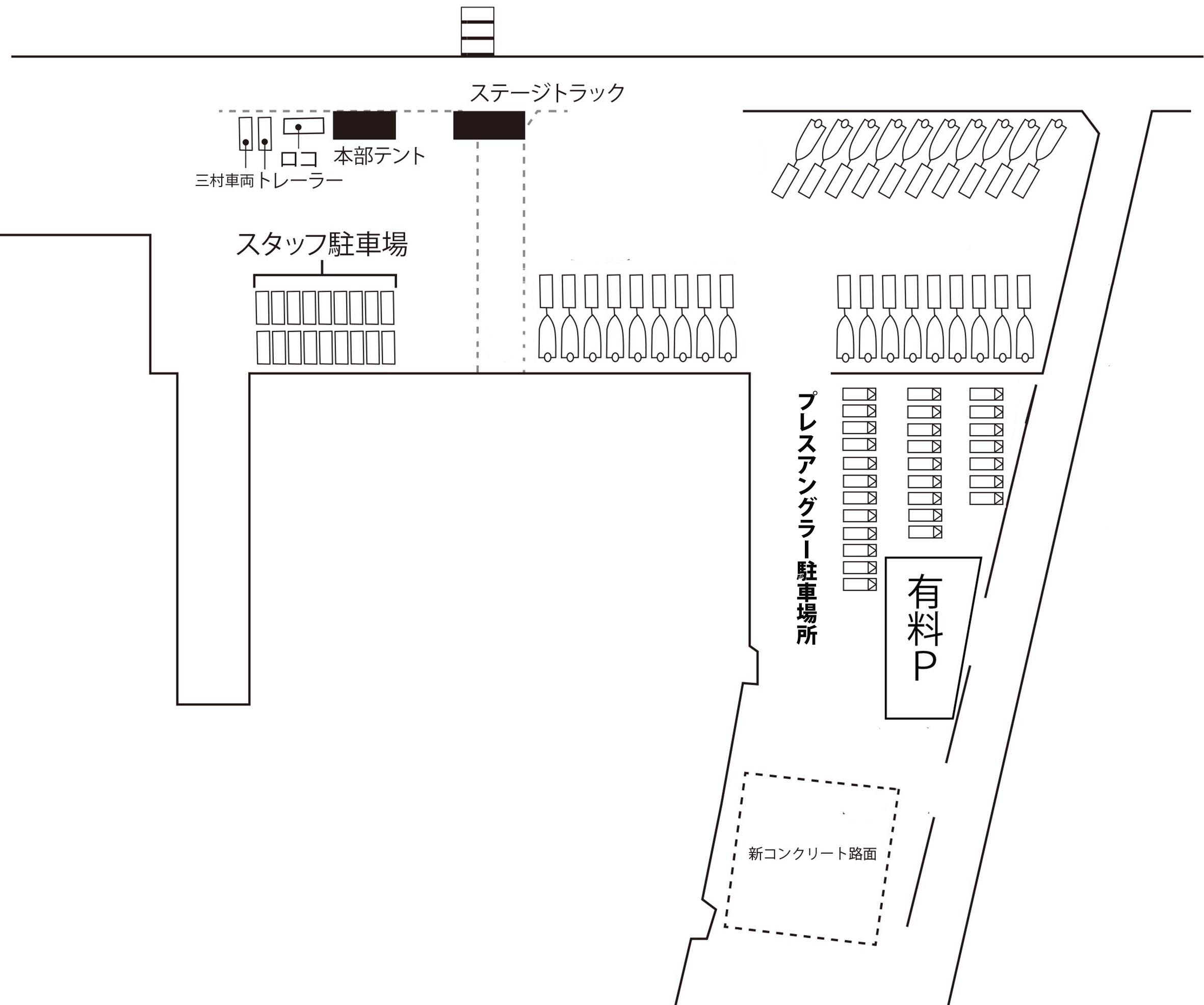 プレスアングラー駐車場所は以下の図を参照してください。