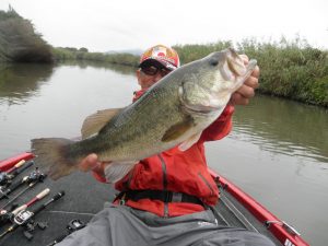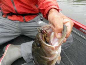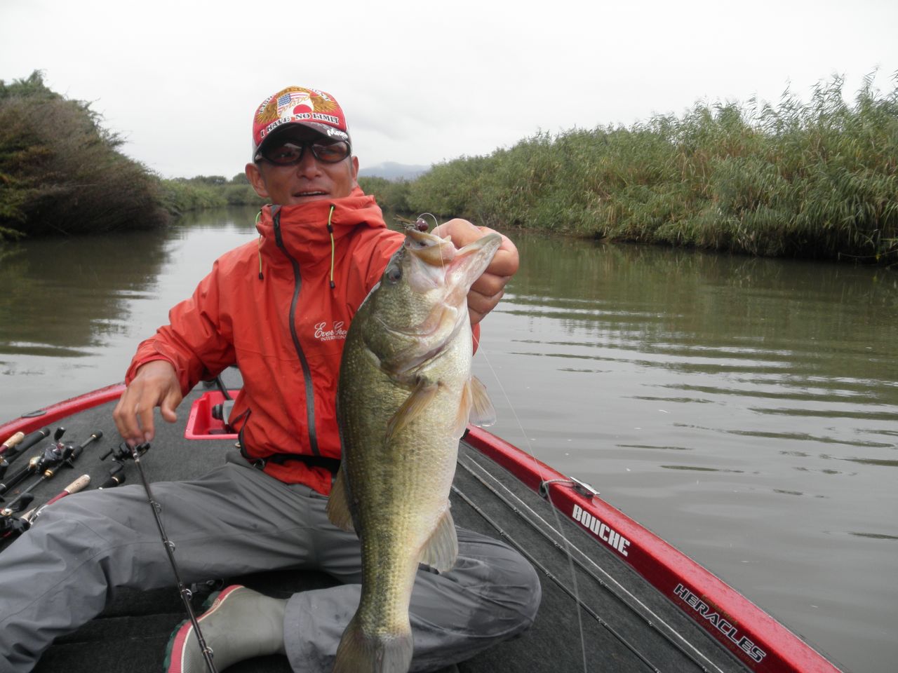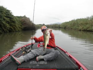 中流エリアから上流エリアにむけカバーにはラバージグそしてカバーの外は、クランクとルアーローテーション!