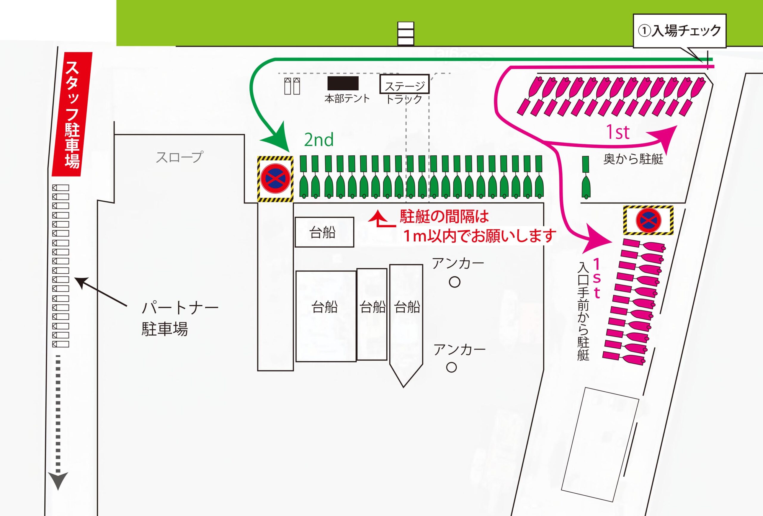 2日目はトレーラー駐艇位置も、2日目のフライト順の駐艇場所となりますので注意してください
