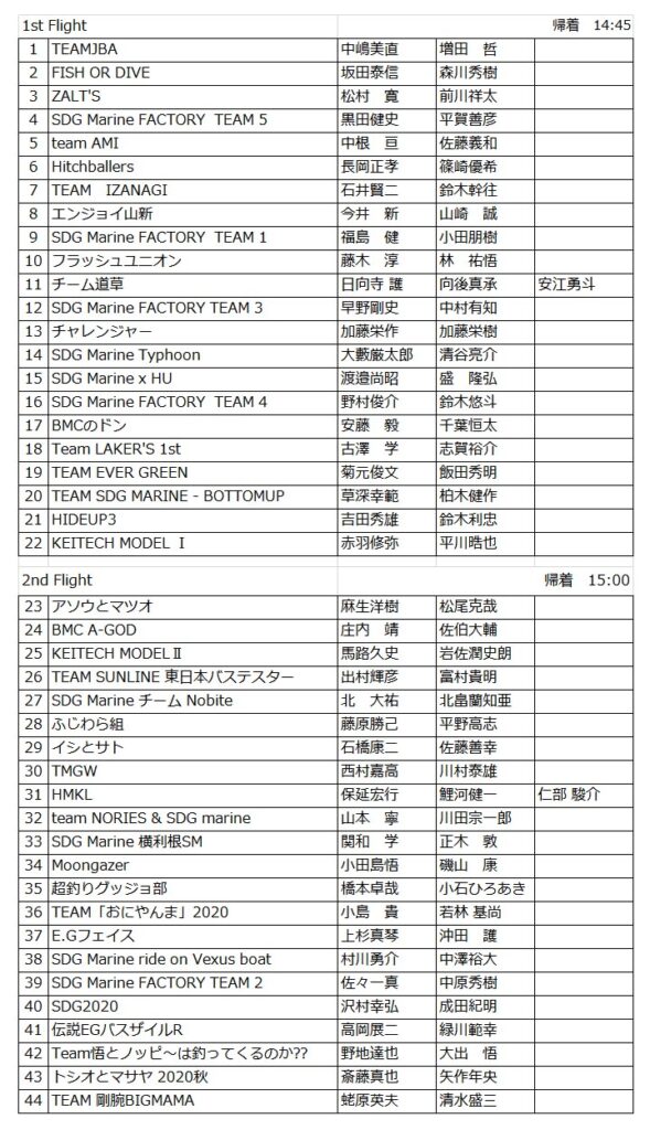 フライトは以下の通りです。ご自身のゼッケン(No.)を