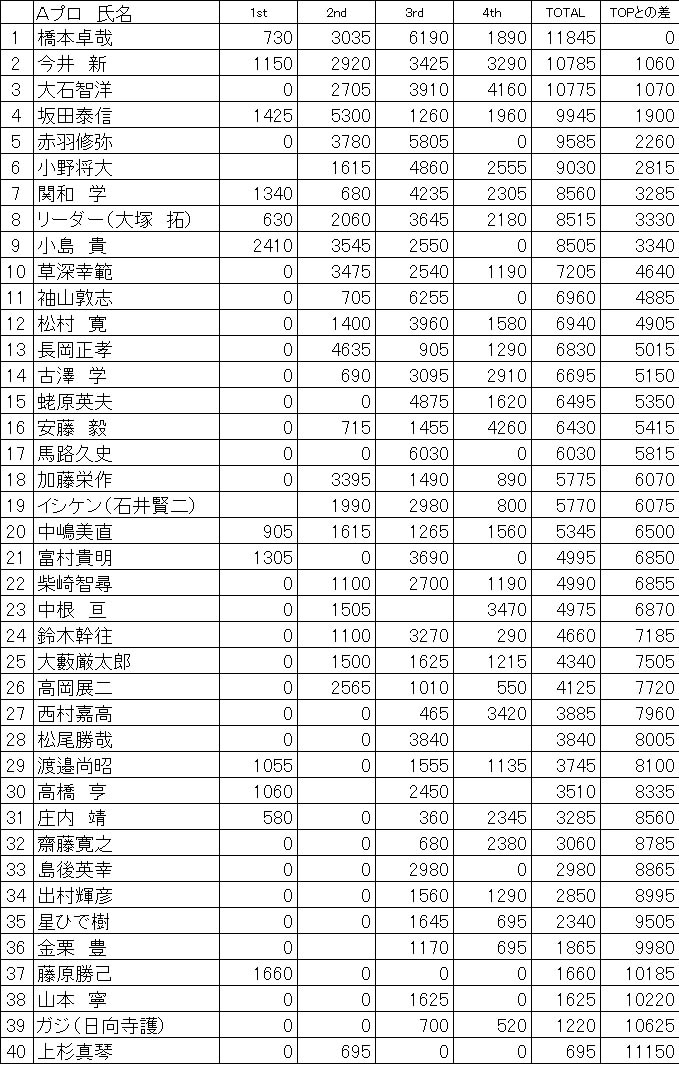Aプロ年間ランキング上位12位まで、クラシック出場権を得られます。