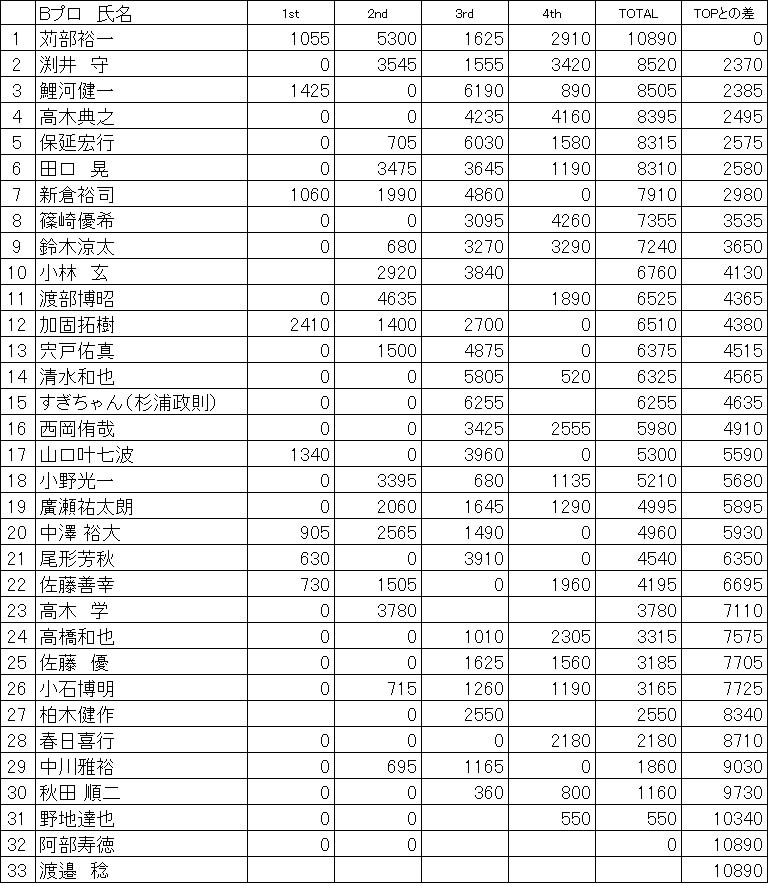 2022 WBSプロ 最新・年間暫定ランキング