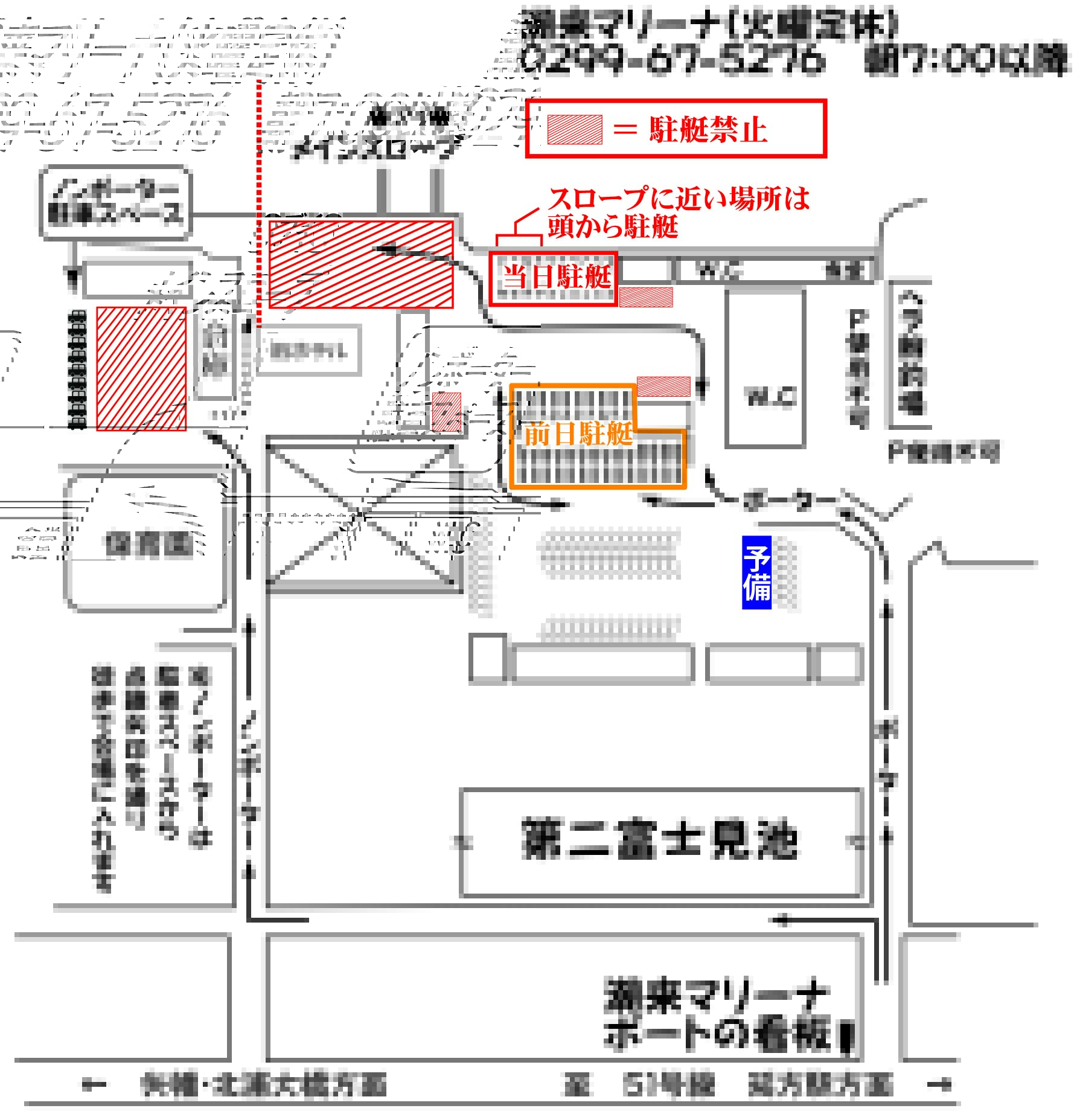 各トレーラーはできる限り、間隔をつめて駐艇してください。