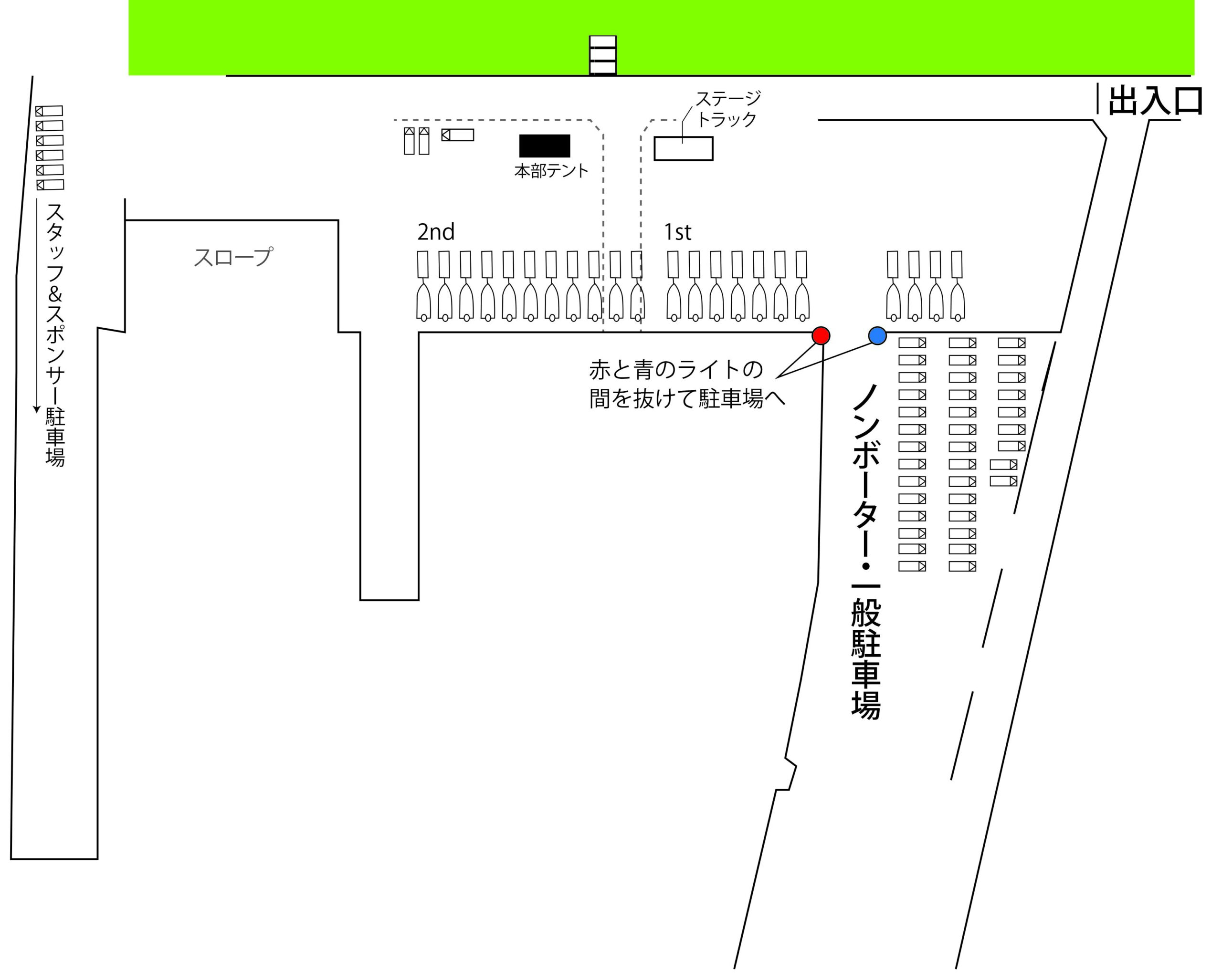 ★トレーラーおよびBプロ・ゲストの車両駐車位置は、上図の通りです。