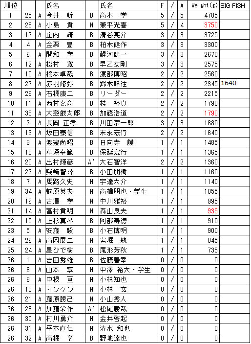TOURNAMENTトーナメント HOME > TOPICS > TOURNAMENT > RESULT > 8/9結果速報 2020.08.09 RESULT 8/9結果速報 8月9日、土浦新港を会場にWBS第1戦が開催されました。 初日の結果は以下の通りです。 RESULT Back
