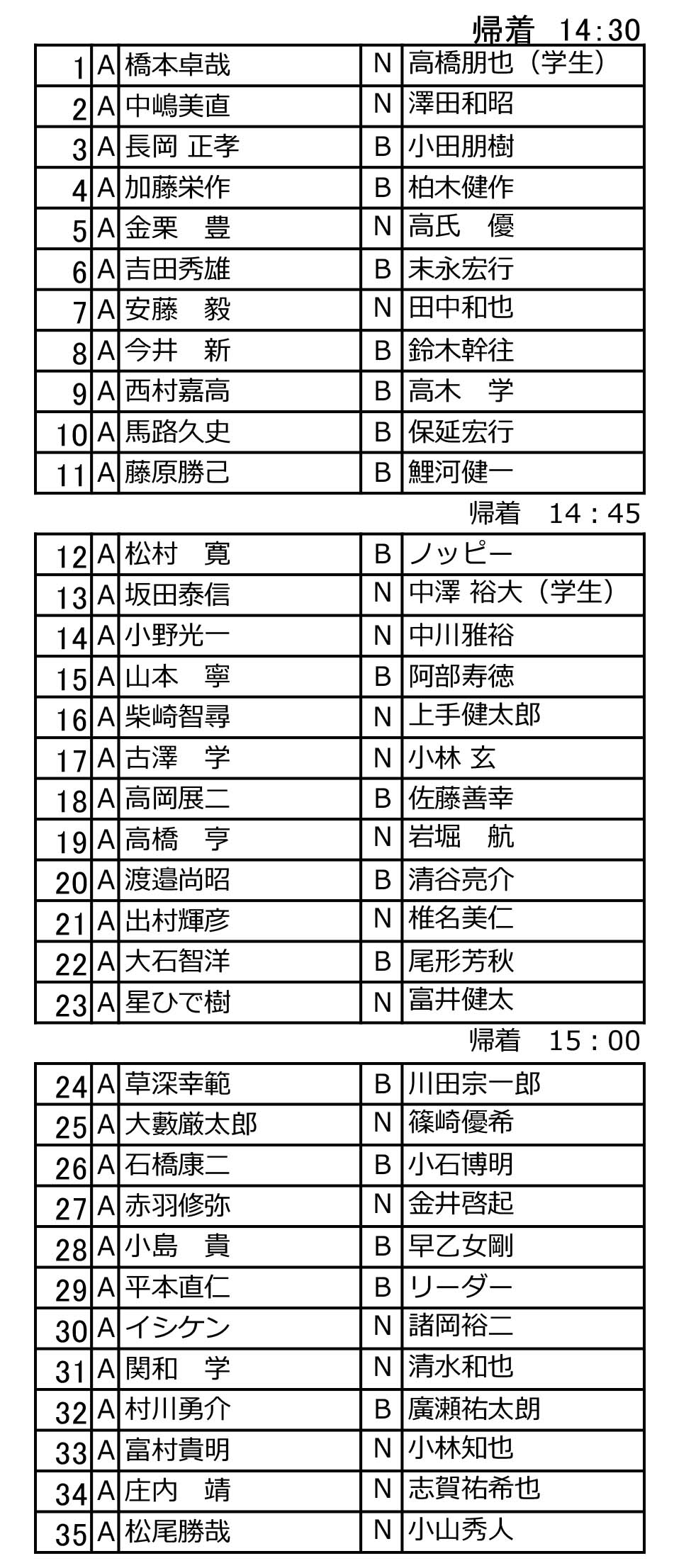 ※Day2の帰着時間は、1st 13:30 2nd 13:45 3rd 14:00 となります。