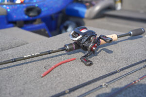 • 4位:坂田泰信・添田敦チーム 小野川に入るまでの時間調整で妙義に入って魚を獲った。DEPSリバウンドスティックの7gテキサスという添田選手の意表を衝いたリグにそいつは食って来た。実はこのリグ、添田選手がホームの桧原湖で釣りまくっているものだという。