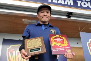 ネタは高比重スティックベイトのノーシンカー。二日目はやはり土浦周辺のシャローでドットクローラーのノーシンカーをステイさせ1810gを獲った盛隆弘・内海昭チームが獲得した。