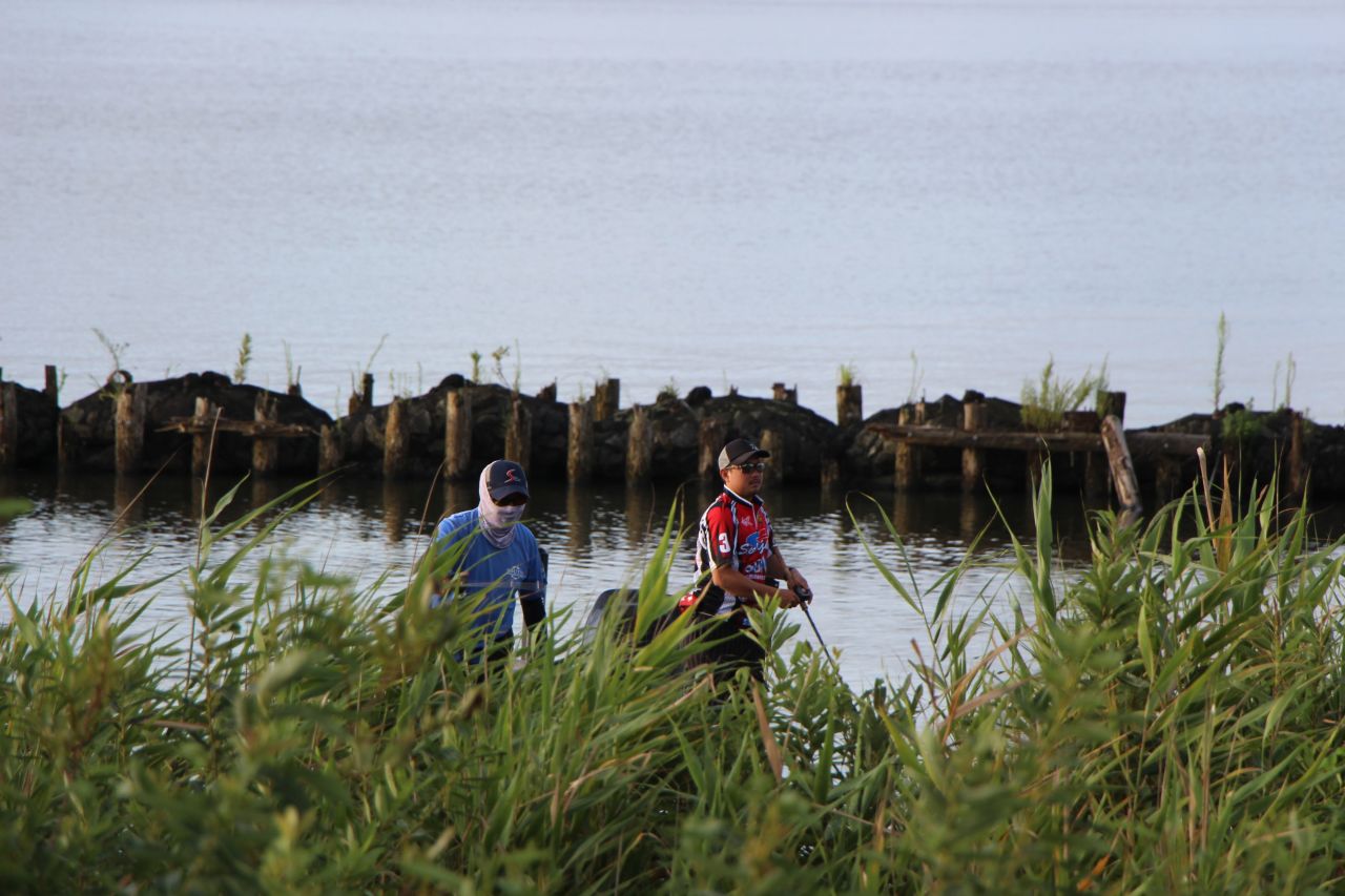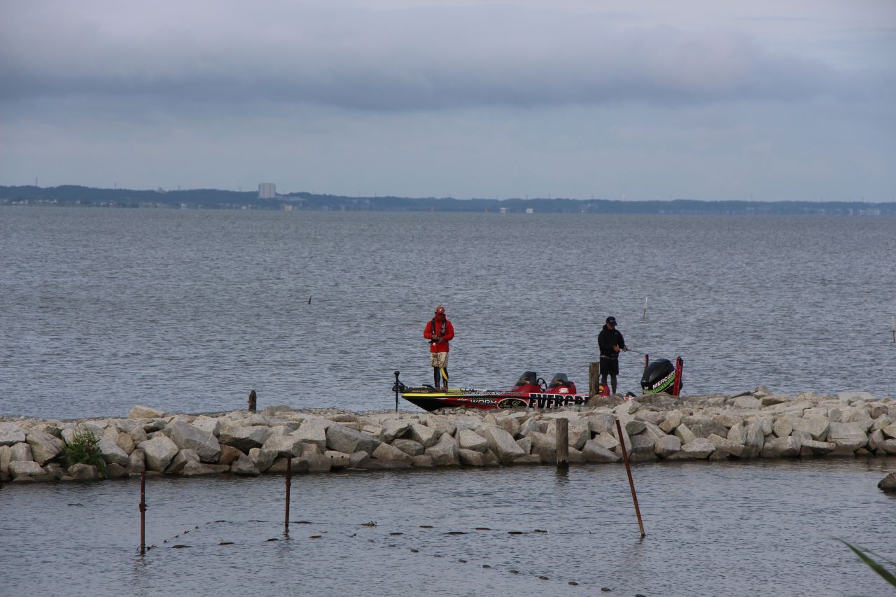 だが二日目は立て直し、風が吹いたらシャローのハードボトム、風がなければ浚渫と決め、二人とキャロライナリグメインで、攻めとおした。
