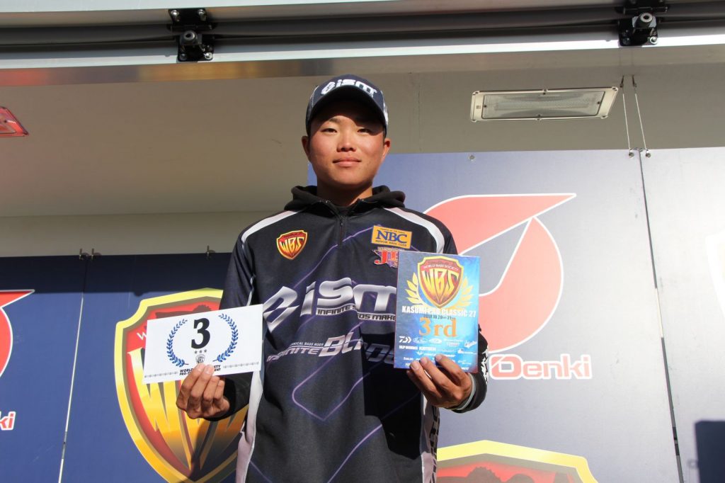 二日間とも北浦山田ワンド、常陸利根川というルートを回り、ワイルドハンチ、スキルフルなどのクランクベイト、スリムヤマセンコーのネコリグなどを投入して戦ったが、二日目のサイズダウンが影響して3位に終わった。